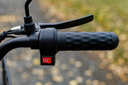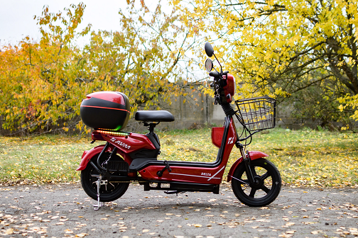 - Электроскутер оснащен барабанными тормозами, обеспечивающими надежное и безопасное торможение