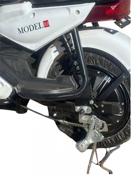 Имеет вместительную прямую платформу для ног, широкое и мягкое водительское сиденье и дополнительное мягкое сиденье со спинкой для пассажира.Прочная стальная рама рассчитана на максимальную нагрузку до 160 кг (выдержит двух взрослых человек). С электроскутером идет ключ зажигания и брелок для управления сигнализацией (два комплекта). У электроскутера мягкая подвеска т.к. установлен передний и задний амортизатор, что делает езду по грунтовой дороге с корнями и ямами очень комфортной. В скутере предусмотрены педали. При их помощи можно доехать до места назначения, как на обычном велосипеде, если так случится что у вас сядет аккумулятор. Электроскутер полноразмерный, водитель с ростом 190см будет чувствовать себя комфортно, места для ног предостаточно. Электроскутер будет незаменимым помощником в небольших населенных пунктах, где нет заправочных станций и запасать бензин в канистрах неудобно. Электроскутер чем-то похож на мобильный телефон, где владелец ставит его на зарядку по прибытию и не обременен пользоваться заправками. Также он намного экономичнее бензиновых скутеров. Электроскутер оснащен звуковым сигналом, поворотниками, зеркалами заднего вида, яркой линзованной фарой и цветным экраном. Для фиксации скутера на стоянке предусмотрены два вида подножек. Лапка для быстрой и удобной фиксации и подножка для четкой вертикальной фиксации под задним колесом. В электроскутере есть три скоростных режима, где первый это самый безопасный режим, а третий скоростной.