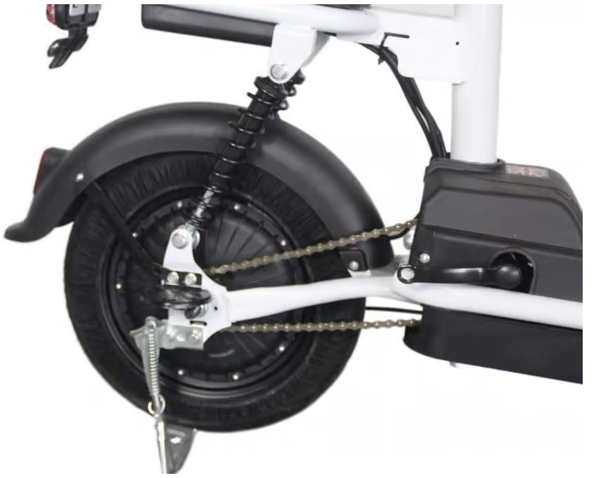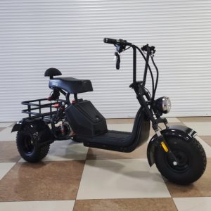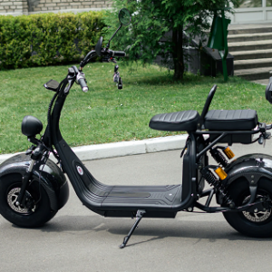Имеет вместительную прямую платформу для ног, широкое и мягкое водительское сиденье и дополнительное мягкое сиденье со спинкой для пассажира. Прочная стальная рама рассчитана на максимальную нагрузку до 160 кг (выдержит двух взрослых человек). С электроскутером идет ключ зажигания и брелок для управления сигнализацией (два комплекта). У электроскутера мягкая подвеска т.к. установлен передний и задний амортизатор, что делает езду по грунтовой дороге с корнями и ямами очень комфортной. В скутере предусмотрены педали. При их помощи можно доехать до места назначения, как на обычном велосипеде, если так случится, что у вас сядет аккумулятор. Электроскутер полноразмерный, водитель с ростом 190см будет чувствовать себя комфортно, места для ног предостаточно. Электроскутер будет незаменимым помощником в небольших населенных пунктах, где нет заправочных станций и запасать бензин в канистрах неудобно. Электроскутер чем-то похож на мобильный телефон, где владелец ставит его на зарядку по прибытию и не обременен пользоваться заправками. Также он намного экономичнее бензиновых скутеров. Электроскутер оснащен звуковым сигналом, поворотниками, зеркалами заднего вида, яркой линзованной фарой и