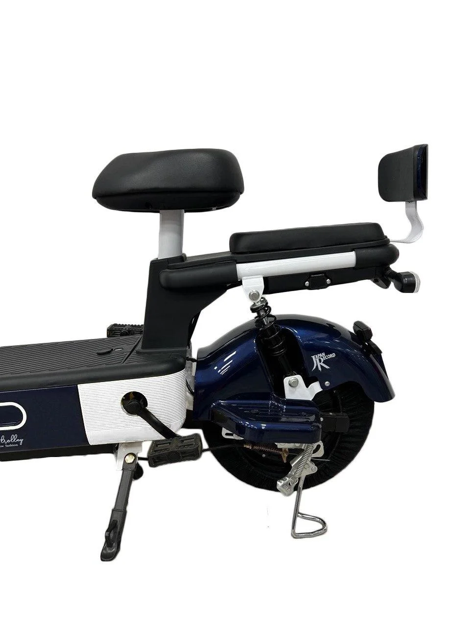 Электроскутер имеет вместительную прямую платформу для ног, широкое и мягкое водительское сиденье и дополнительное мягкое сиденье со спинкой для пассажира.Прочная стальная рама рассчитана на максимальную нагрузку до 150 кг (выдержит двух взрослых человек). С электроскутером идет ключ зажигания и брелок для управления сигнализацией (два комплекта). У электроскутера мягкая подвеска т.к. установлен передний и задний амортизатор, что делает езду по грунтовой дороге с корнями и ямами очень комфортной. В скутере предусмотрены педали. При их помощи можно доехать до места назначения, как на обычном велосипеде, если так случится что у вас сядет аккумулятор. Электроскутер полноразмерный, водитель с ростом 190см будет чувствовать себя комфортно, места для ног предостаточно. Электроскутер будет незаменимым помощником в небольших населенных пунктах, где нет заправочных станций и запасать бензин в канистрах неудобно. Электроскутер чем-то похож на мобильный телефон, где владелец ставит его на зарядку по прибытию и не обременен пользоваться заправками. Также он намного экономичнее бензиновых скутеров. Электроскутер оснащен звуковым сигналом, поворотниками, зеркалами заднего вида, яркой линзованной фарой и большим цветным экраном типа “Планшет”. Для фиксации скутера на стоянке предусмотрены два вида подножек. Лапка для быстрой и удобной фиксации и подножка для четкой вертикальной фиксации под задним колесом. В электроскутере есть три скоростных режима, где первый это самый безопасный режим, а третий скоростной.