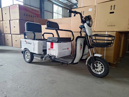 Трехколесный электроскутер Shtenli Model 34 — это электроскутер, трицикл 2в1. Он может совмещать комфортное передвижение вдвоём, в комфортных креслах с подлокотниками и он трансформируется в грузовой трицикл для перевозки грузов. Модель одним движением с лёгкостью трансформируется в одноместный электроскутер с глубоким вместительным кузовом.