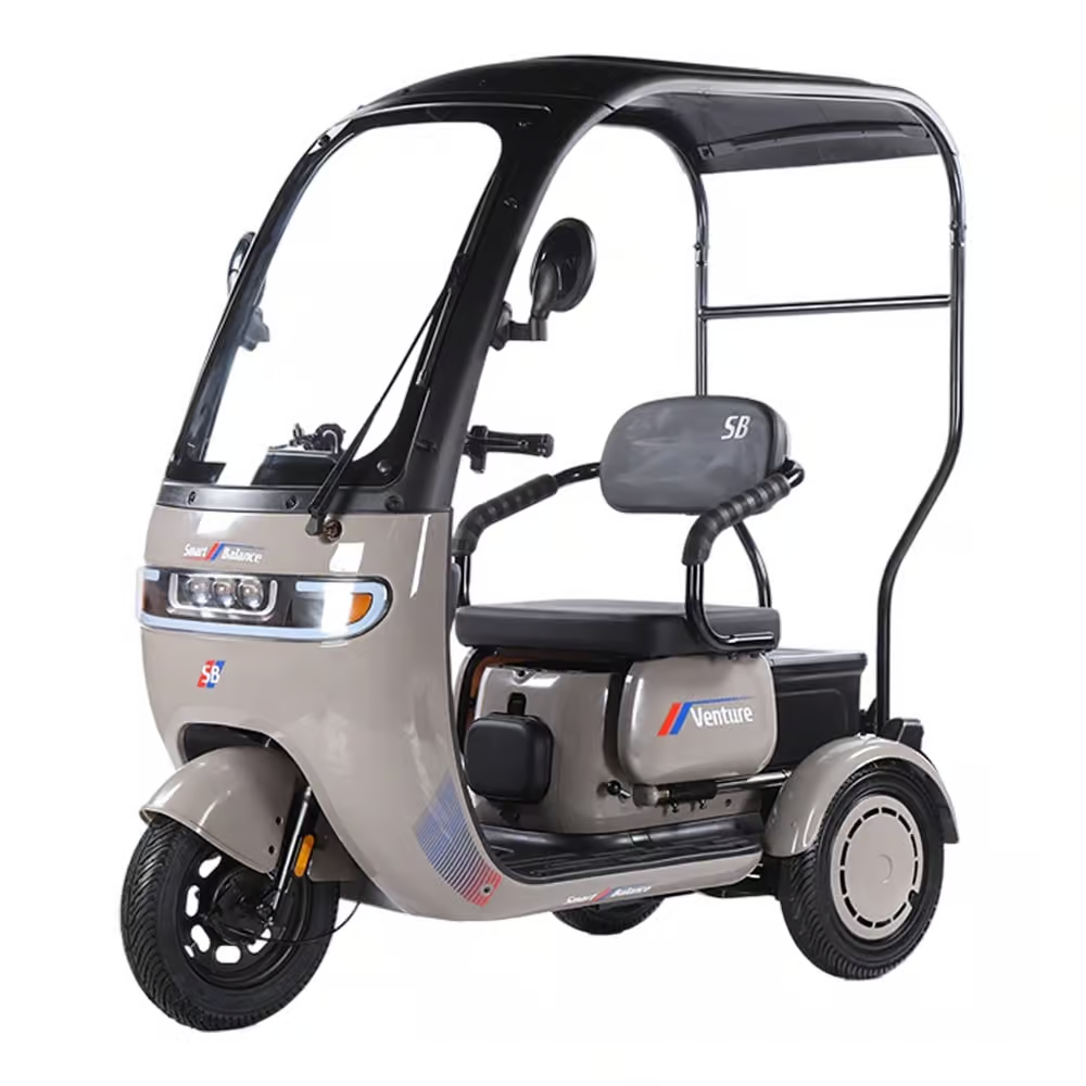 Электротрицикл SmartBalance Venture (с крышей) Этот электроскутер идеально подходит для поездок в магазин, на дачу, прогулок в парке или визитов к друзьям. Он не требует водительских прав, работает тихо и экологично — не создаёт шума и не загрязняет окружающую среду. Внутри есть просторный багажник и кофры, куда легко поместятся продукты, личные вещи или даже корзина с фруктами из сада.