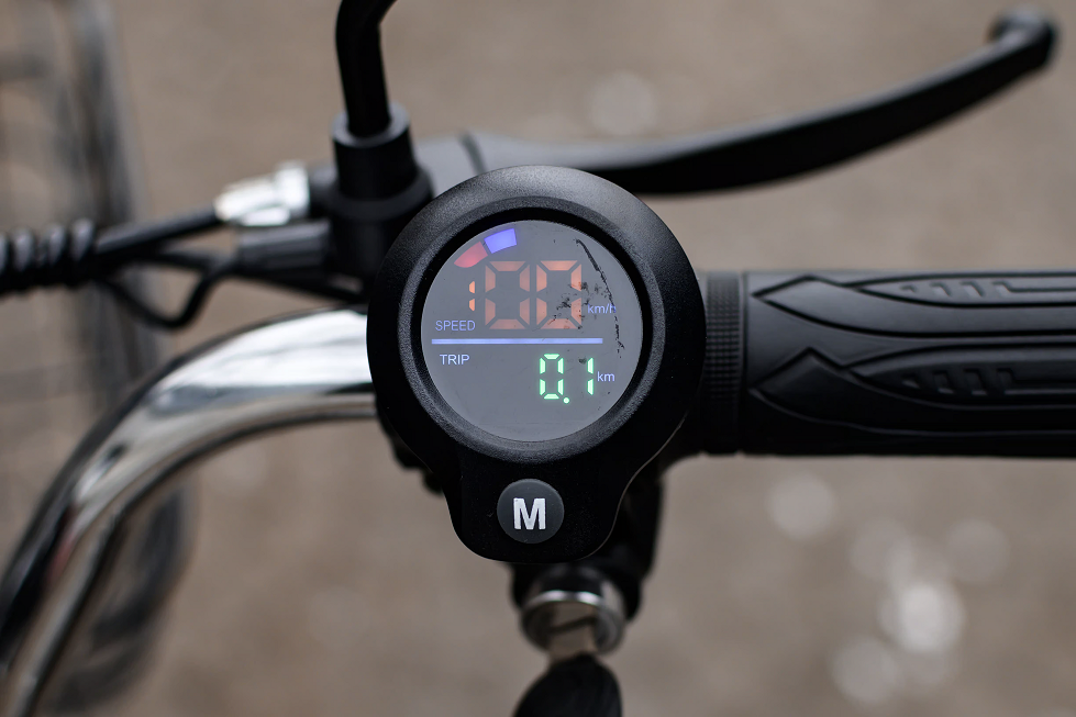 - Информативный дисплей, отображающий текущую скорость, передачу, уровень зарядки, общий пробег;
