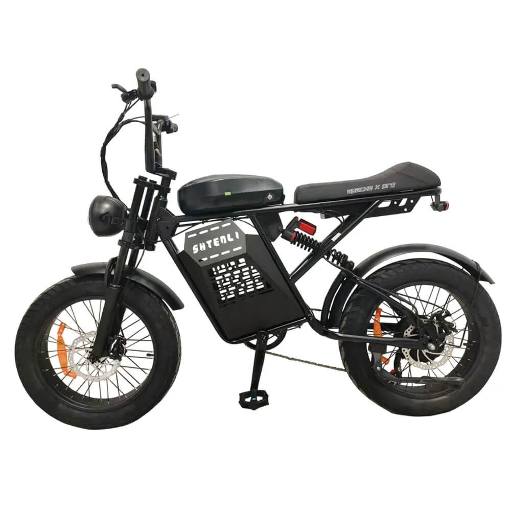 Shtenli Apache X PRO – это электробайк, выполненный в формате полноразмерного велосипеда, оборудованный легкосъемным литий-ионным аккумулятором 48V емкостью 13Ah. Электродвигатель мощностью 250W обеспечивает мягкий старт и уверенный разгон.
