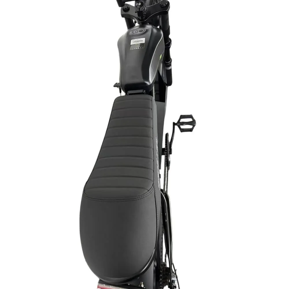 Прочная рама из стали выдерживает максимальную нагрузку до 150 кг. Комфортное седло анатомической формы и амортизаторы гарантируют удобство передвижения по дорогам с любым покрытием.