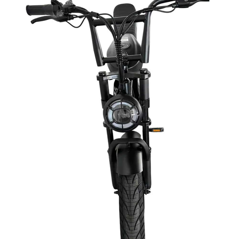 Колеса размером 20 дюймов с шириной 4.0 оснащены широкими мотоциклетными покрышками. Безопасность обеспечивается дисковыми тормозами спереди и сзади.