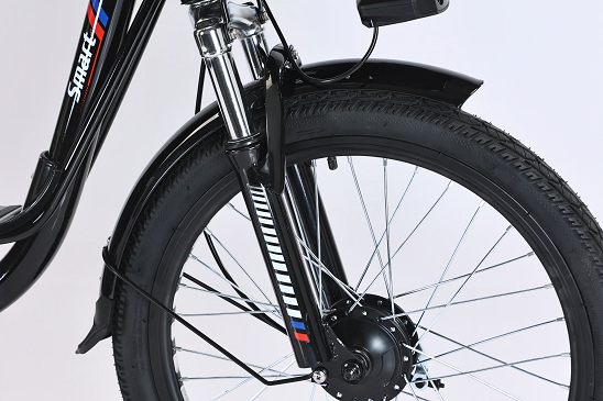 Освещение – это важная часть безопасности электровелосипеда. Здесь установлена двойная передняя фара для максимального освещения дороги в темное время суток. Также на модели установлены поворотники и задний стоп-сигнал.