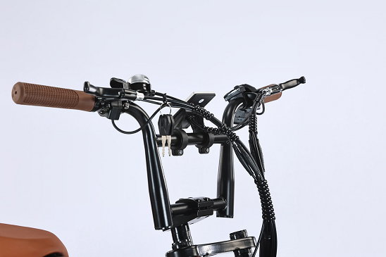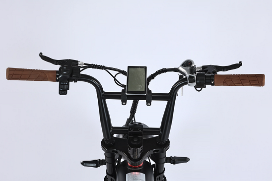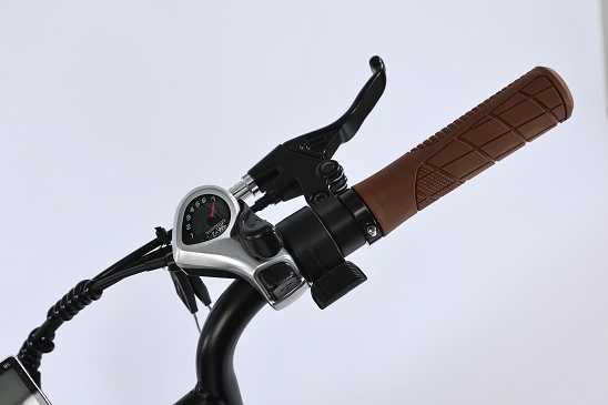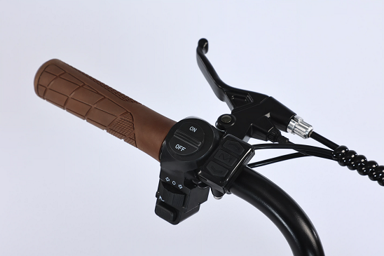 - Все органы управления находятся на руле. Слева кнопка звукового сигнала, модуль управления светом и поворотниками, рычаг тормоза, а также модуль управления электропередачами. На правой рукоятке переключатель механических передач, курок газа и рычаг тормоза. Посередине расположился дисплей бортового компьютера.