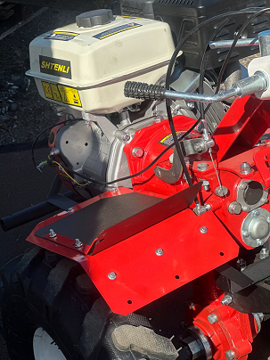 Одна из отличительных особенностей мотоблока — большие колеса. В комплекте идут колеса размера 7 на 12. С такими колесами вы сможете использовать мотоблок на любой почве, в том числе и после сильного дождя.